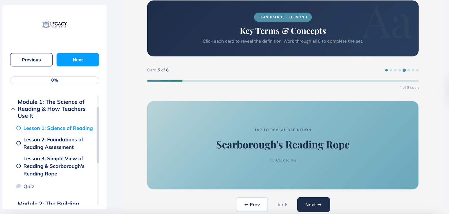 Skip outdated PDFs. Follow a structured study path built around real EC-6 competencies so every lesson has purpose.